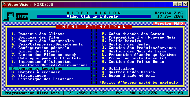 Retour à la Page principale Retour au logiciel Vidéo Vision